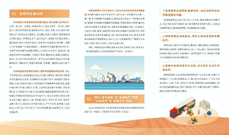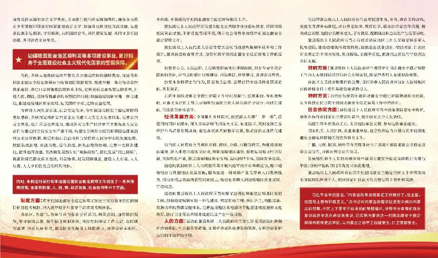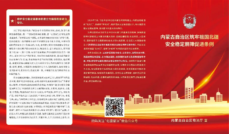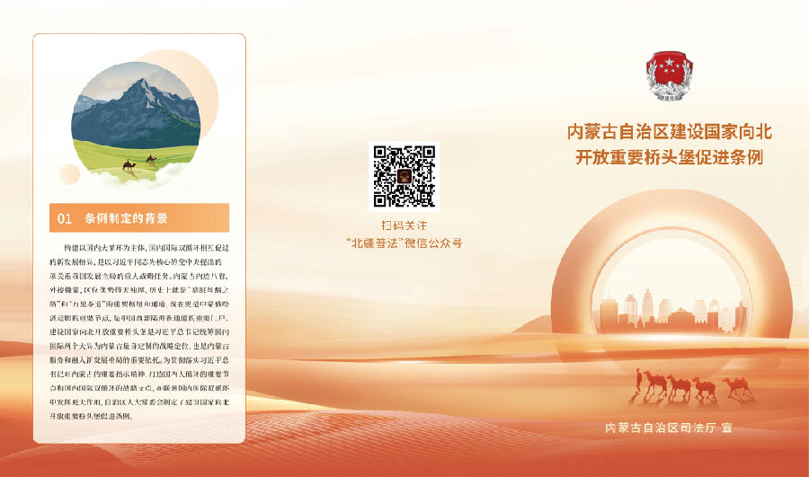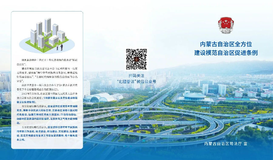 为深入学习宣传《内蒙古自治区全方位建设模范自治区促进条例》等六部促进条例,丰富宣传内容和形式,自治区司法厅设计制作了系列宣传折页,各地各部门可结合实际下载使用,并通过“法律七进”等活动在城乡社区、机关单位、公园广场等场所进行发放。