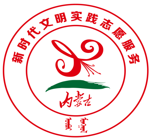标识上方文字“新时代文明实践志愿服务”及下文“内蒙古”汉蒙文字样,辨识度高,指向性强,具有鲜明的内蒙古特色。