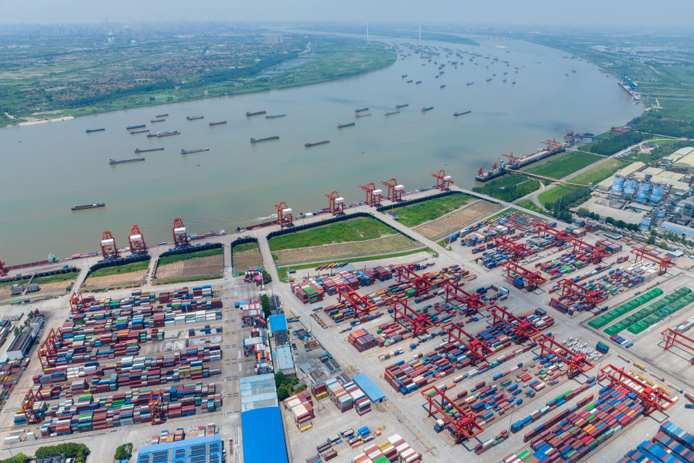 武汉阳逻港一期码头(2023年7月5日摄,无人机照片)。新华社记者伍志尊摄