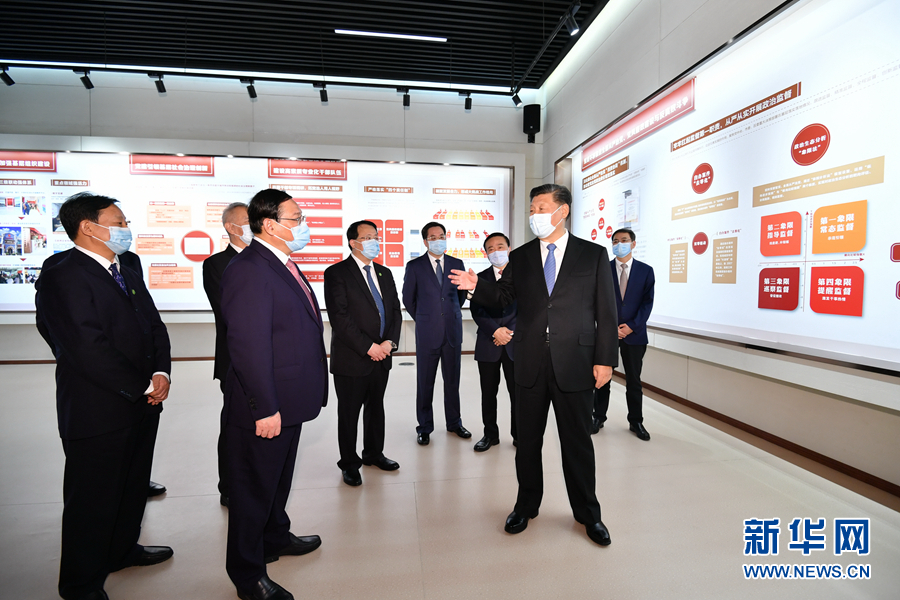 庆祝大会后,总书记来到浦东展览馆,参观“在国家战略的引领下——浦东开发开放30周年主题展”。