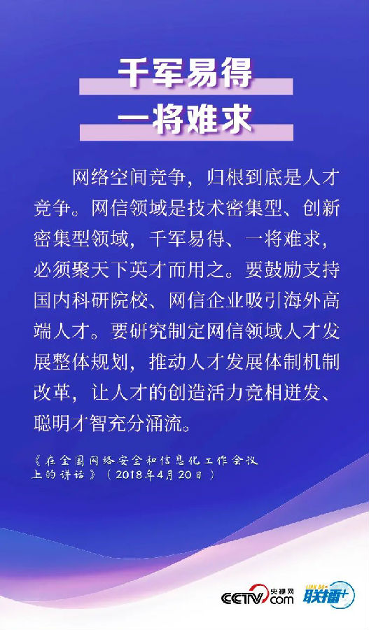 党的十八大以来,习近平总书记站在党和国家事业发展全局的战略高度,从汇聚网络人才方面多次部署网络强国建设,鼓励构建具有全球竞争力的人才制度体系。