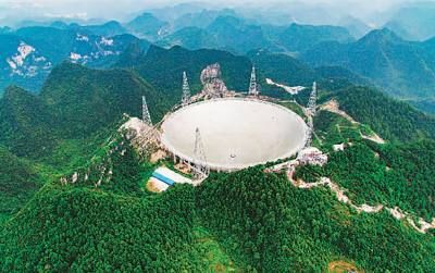 图为有着“超级天眼”之称的500米口径球面射电望远镜工程全景。新华社记者 刘 续摄